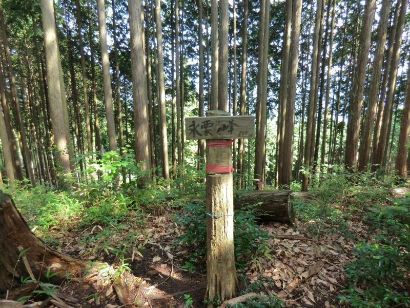 見晴広場側から林道にでて 永栗ノ峰への道標