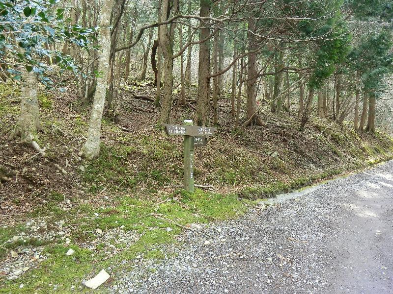 本谷林道から下り御幸歩道口への登山道入口