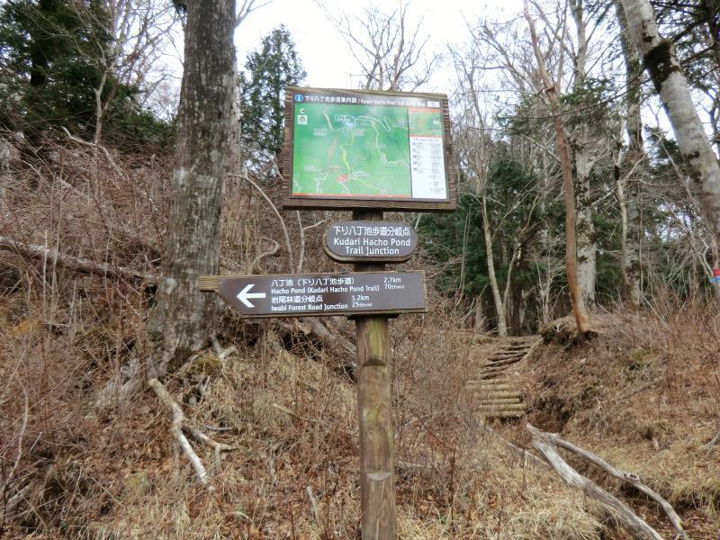 八丁池(下り八丁池歩道)岩尾林道分岐/