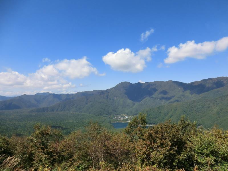 頂上からは湖が見え、富士山・青木ヶ原樹海・御坂山塊