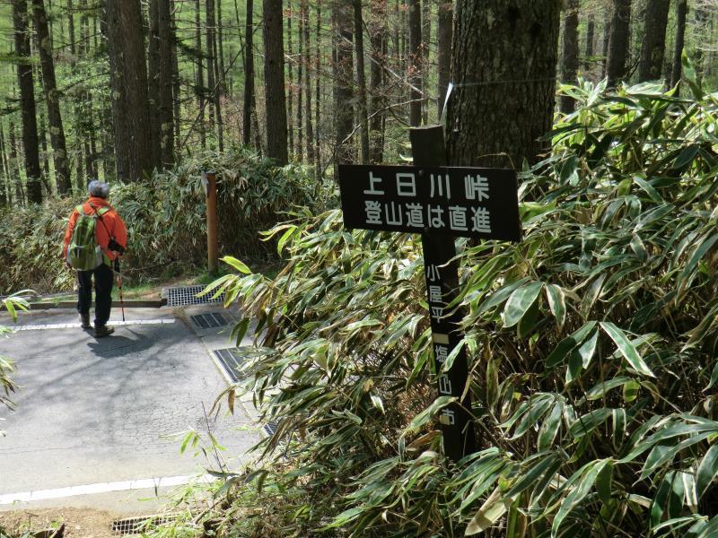 上日川峠からは、舗装林道とその脇の登山道で来られる