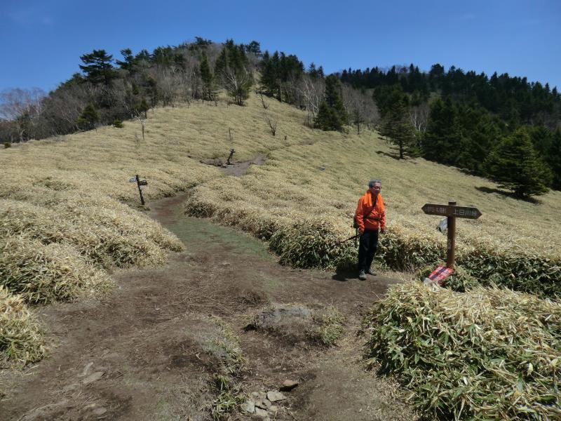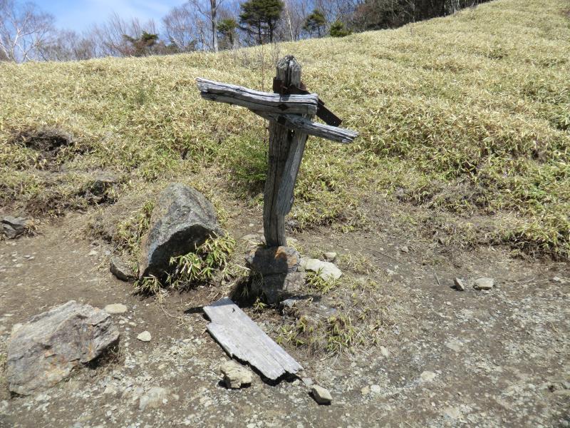 登山道の途中に道標のみ存在する。